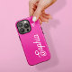 Esta capa de telefone feminina e colorida apresenta um fundo rosa-quente vibrante, com o seu nome na moda e na escrita retrorbranca, e um coração desenhado à mão.