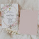 O convite da Primeira Comunhão elegante e feminina apresenta belas rosas cor-de-rosa aninhadas em folhagem verde macia decorando uma estrutura de ouro. As rosas e folhas têm detalhes mais brilhantes para adicionar um toque de brilho. Todo o texto é editável para que você possa usá-lo para qualquer tipo de cerimônia religiosa, Batismo, Cristo, Dedicação ou Confirmação.
