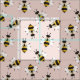 Um padrão de abelhas rústicas amarelas e pretas listradas, ilustradas, enxergam através deste tecido rosa macio.