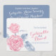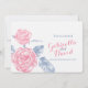 Linda arte de rosa gravada em cinza roxa, azul, rosa branca e rosa, tons de arte, convite floral para o casamento. Edite este convite com suas próprias palavras. Design exclusivo de um esboço original de caneta de tinta por Sarah Trett.