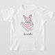 Um coelho te ama camisa que você pode personalizar com o nome deles. Coelho rosa bonito segurando um coração que diz: "Um coelho te ama você."