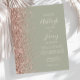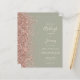 A borda esquerda deste elegante convite de casamento moderno apresenta uma borda falsa de ouro rosa. O texto personalizável combina manuscrito de marfim, fontes em copperplate e itálico em um fundo verde de sábio. O verso apresenta um design verde-sábio e rosa dourado correspondente.