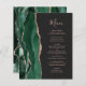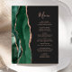 A borda esquerda deste elegante cardápio moderno de casamento apresenta uma esmeralda verde aquarela agata borda com falso rosa dourado. O texto personalizável combina o script de escrita manual de cinzas de carvões brancos e fontes de impressão em um fundo escuro. O verso apresenta um design emerald verde e rosa dourado.