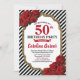 QUALQUER IDADE. Todo texto é editável. Adquira este convite de festas elegante e glamouroso para a festa de aniversário em qualquer idade. Projetado com rosa vermelha, estrutura dourada brilhante. As listras pretas e brancas adicionam um toque de chic moderno. Consiga este belo convite agora!