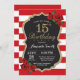 Rosa vermelha 15 Aniversário do Convite Dourado Glitter. Convidar Festa de aniversário Preta e Dourada. Dourada Glitter. Stripes Vermelhas e Brancas. Chalkboard. Digital Imprimível.