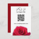 Cartões de resposta de casamento com rosa vermelha realista e opção de resposta de código QR. Personalize o texto preto e inclua um site de casamento ou outra forma de os convidados responderem. O reverso é vermelho sólido.