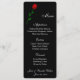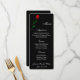 Placa de menu mostrada em papel preto básico com cantos arredondados e com um impressão de rosa vermelha solteiro. Na base estão os nomes da Noiva e do Groom e a data do casamento para comemorar o seu evento. Script e texto padrão em branco. Personalize seus nomes e itens de menu clicando no botão personalizar, procure à direita e localize as caixas apropriadas para alterar suas informações. Desejo-lhe os melhores votos para o seu Dia de Casamento.
