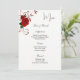 Este modelo de placa de menu é mostrado em papel básico em branco com um adorável design de impressão de rosa vermelha. Script e texto padrão em preto. Personalize os nomes e os itens de menu para o seu, clicando no botão personalizar, procure à direita e encontre as caixas adequadas para alterar as informações. Desejo-lhe os melhores votos para o seu Dia de Casamento.
