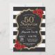 Surpresa Rosa vermelha 50º Aniversário Convite Dourado. Convidar Festa de aniversário preto e Dourado. Dourada Glitter. Black and White Stripes. Chalkboard. Digital Imprimível. Para mais personalização, clique no botão "Personalizar" e use nossa ferramenta de design para modificar este modelo.