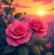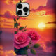 Uma capa de telefone vibrante que apresenta rosas cor-de-rosa contra um incrível pano de fundo do pôr do sol.