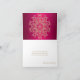 Um belo cartão de agradecimento de casamento em fuchsia e dourado com um padrão exótico e étnico inspirado em ornamentos de sari indiano, semelhante a um medalhão, com um desenho floral e de lótus. Este elegante e belo cartão de agradecimento em estilo indiano moderno é perfeito para qualquer ocasião formal ou especial, incluindo festa de aniversário, chá de noiva ou aniversário com tema de Noites Árabes de leste asiático, indonésio ou Aladdin. © Chrissy H. Studios, LLC. Todos os direitos reservados.