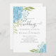 rosas azuis e poeirentos bonito, folhas de verde limão em um artigo de papelaria de casamento. Parte de uma coleção maior que inclui convites para casamento de orçamento, salvar datas, rsvps, adesivos, etiquetas de favor e muito mais.