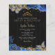 Orçamento Elegante Vintage Azul Rosas Borboletas Negra Dourada Lace Sweet 16 Aniversário Convite