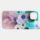 Elegantes rosas azuis verdes e anêmonas roxas em fundo rosa quente