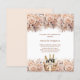 Um convite moderno, na moda e glamouroso para um Chá de panela. Fundo de cor branca, decorado com uma cesta com flautas, frascos de vinho espumantes e beige, flores de cor creme. Personalize e adicione os detalhes da sua festa. 1 folha = 1 convite impresso de borda a borda.
