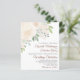 Este convite para o casamento é elegante e agradável enquanto ainda é amigável e barato. O design apresenta um bando de rosas pintados manualmente de aquarela, flores, folhas e eucalipto em tons de champanhe ou pêssego pálido. O texto correto e justificado dá-lhe uma sensação elegante moderna. Uma maneira maravilhosa de pedir aos seus amigos e familiares que compartilhem sua alegria no seu dia especial.