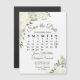 Este belo casamento magnético, exceto os cartões de data, apresenta um design floral rústico, mas elegante, pintado à mão com rosas de aquarelas, flores e flores em tons de marfim, branco e creme, cercado por um bando de folhas de eucalipto, verde e folhagem. Há um calendário personalizável mostrando o mês do seu casamento com um coração em volta do seu dia especial. Este cartão de chic na moda boho é uma forma excelente de garantir que seus amigos e familiares estejam cientes do seu próximo casamento.