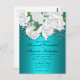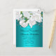 Um belo convite para o casamento floral neste cartão postal bonito, o design tem um lindo buquê de rosas brancas ao longo do topo, sobre um vívido e colorido aqua. Todos os detalhes podem ser personalizados conforme necessário.