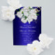 Este anúncio muito elegante, azul escuro do casamento apresenta um belo buquê noivo de rosas brancas acentuado com o ar delicado do bebê pendurado no topo. Este encantador convite para o cartão poste com o tema azul metálico e floral faria um convite ideal para um casamento de botânicos ou jardins, ou qualquer evento importante realizado em um ambiente ao ar livre.