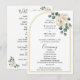 Guie seus convidados pelos momentos significativos da sua cerimônia com este programa de casamento lindamente projetado, inspirado num tema de casamento de jardim de rosas brancas aquareladas. O design apresenta delicadas flores de rosas brancas combinadas com folhagens suaves dispostas ao longo de uma graciosa moldura de arco de casamento floral minimalista dourada, criando um refinado acento botânico que parece romântico e atemporal. A elegante obra de arte floral reflete uma estética de casamento romântica e atemporal, trazendo um toque gracioso e sofisticado para a papelaria da sua cerimônia.