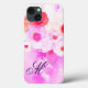 Elegantes rosas brancas azuis e verdes e anêmonas roxas e rosadas em fundo rosa quente