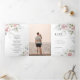 Convide seus entes queridos para comemorar seu dia especial com este elegante Convite Trifold para Casamento, com rosas de cor-de-água cor rosa e pincelada, delicado verde pastel e um quadro fotográfico personalizado para mostrar sua história de amor. O layout maravilhosamente projetado adiciona um toque romântico e sofisticado, fazer uma escolha perfeita para casamentos de primavera e verão. Com sua elegância floral de eterno e formato triplo único, este convite certamente deixa uma impressão duradoura em seus convidados. Uma maneira fantástica de anunciar seu casamento com charme e graça!