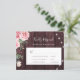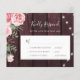 Cartão de confirmação de casamento rústico country elegante com opções de refeição, apresentando um buquê de rosas em aquarela cor de rosa desbotado com folhas verdes e folhagens e uma caligrafia elegante com letras manuscritas sobre um fundo de madeira de celeiro burgundy escuro com luzes de corda. +++++++++++++ Conjunto de convite e papelaria correspondente disponível na coleção. ++++++++++ POR FAVOR, LEIA ISSO ANTES DE COMPRAR! Este é um cartão acessível e econômico impresso em uma folha de papel (cada folha tem um cartão). ++++ Para a melhor relação preço-qualidade, nosso conselho é escolher o tipo de papel Semi-Brilho (é grosso o suficiente para ser usado para papelaria) ++++ Se você precisar de envelopes, escolha a OPÇÃO DE ENVELOPE. +++ Verifique todas as informações e ortografia do seu texto porque você receberá exatamente o que vê - ninguém mais verificará nada antes da impressão. ++++ Este cartão é projetado para o tamanho 4,5 "x 5,6". No caso de você escolher outro tamanho do cartão e o texto ultrap