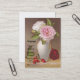 Luz - rosas cor-de-rosa em um vaso branco. Uma rosa vermelha e uns quadris cor-de-rosa sentam-se na mesa neste cartão do comércio do victorian dos 1800s.