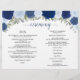 Este belo programa foi projetado para uma cerimônia católica. Ele apresenta um design bócio rústico com rosas de aquarela pintados manualmente em tons de azul empoeirado, marinho, índigo e safira. Há um crucifixo ou cruz, com elegante caligrafia para os nomes dos casais e títulos. O dentro estendeu o espaço para todos os detalhes da cerimônia, enquanto o verso tem informações sobre a festa noiva junto com uma breve nota de agradecimento. É uma bela maneira de dar as boas-vindas aos seus convidados e facilitar-lhes o seguimento da cerimônia. Nota: Os programas são enviados como folhas de papel achatadas, você mesmo precisará dobrá-las.