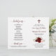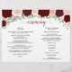 Este belo programa foi projetado para uma cerimônia católica. Ele apresenta um design bócio rústico com rosa de aquarela pintada manualmente em tons de burgundy, vermelho e rosa-pincel. Há um crucifixo ou cruz, com elegante caligrafia para os nomes dos casais e títulos. O dentro estendeu o espaço para todos os detalhes da cerimônia, enquanto o verso tem informações sobre a festa noiva junto com uma breve nota de agradecimento. É uma bela maneira de dar as boas-vindas aos seus convidados e facilitar-lhes o seguimento da cerimônia. Nota: Os programas são enviados como folhas de papel achatadas, você mesmo precisará dobrá-las.