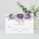 Sombras de buquês Ultra Violet, lavandas e cinzas de rosas de aquarela e folhas de RSVP - muito elegante e chique. Ultra violeta é a Cor do Ano de Pantone para 2018. A parte traseira da placa é uma sombra sólida de roxo com uma camada branca. Se você quiser esta design num item correspondente, por favor, entre em contato comigo através da minha loja.