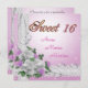 Doce rosas brancas e lavandas de 16 Convites de aniversário com fitas de rendas. Dança de janto semissformal Texto personalizável. Este é um cartão impresso. Não há embelezamentos separados.
