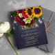 País russo CAIU NO chá de panela na moda barato rosa convite do orçamento modelo no escuro meio-dia marinho fundo do quadro azul apresentando grandes girassóis de ouro amarelo e buquês vermelho-burgundy, cordas de luzes cintilantes e um falso roteiro de tipografia de ouro. +++++++++++++++++ Fácil de personalizar com seus detalhes! Você pode personalizá-lo alterando ainda mais as fontes e as cores das letras. +++++++++++ O convite é adequado para as festas de churrasco/churrasco/churrasco elegantes de outono ao ar livre / quintal vintage rústico. +++++++++ LEIA ISTO ANTES DE COMPRAR! Este é um cartão de casamento de barato orçamentário impresso em uma folha de papel (cada folha tem um cartão). +++ Para obter a melhor qualidade de preço, nosso conselho é escolher o tipo de papel Semi-Gloss (é espesso o suficiente para ser usado para papelaria) +++ Se você precisar de envelopes, escolha a OPÇÃO ENVELOPE. ++ Verifique duas vezes todas as informações e a ortografia do seu texto porque você receberá exatamente o que você vê - ninguém mais verificará nada antes de imprimir. +++ Esta placa foi projetada para o tamanho de 4,5" x 5,6". Caso você escolha outro tamanho do cartão e o texto saia da página, tudo precisa ser corrigido antes de adicionar o produto ao carrinho. Peça ajuda ao Serviço de Design ao Vivo.