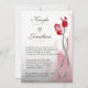 Convites feitos sob encomenda elegantes do casamento do gelo e do fogo que você pode personalizar. Este modelo feito sob encomenda original, artístico do convite do casamento descreve a paixão: duas rosas vermelhas pintados mão bonitas da aguarela com as hastes de prata que entrelaçam sobre um fundo do fogo e do gelo. Categoria: ideias personalizadas do tema do casamento do fogo e do gelo; modelos modernos do convite do casamento do fogo e do gelo. Cores: prata vermelho escuro, do falso e branco.