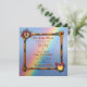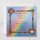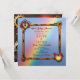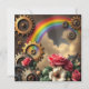 LGBTQIA+ Steampunk metal, rosas, corações e engrenagens em cobre, ouro e prata convite para casamento. Bonito fundo arco-íris com céu nublado.
