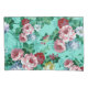 Rosas e flores coloridas. Cor-de-rosa e rosas vermelhas, fundo azul-esverdeado claro com sotaques brancos e azuis.