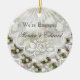 Rosas brancos e ornamento do anúncio do noivado dos laços