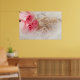 Um poster clássico elegante, com rosas e pérolas com penas peludas no primeiro plano. Muito feminina e bonito.
