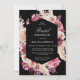 Este Floral Boho Chic Convites de chá de panela - apresenta texto branco manuscrito e elegante com rosas de creme branco e burgundy chic no fundo preto. O reverso do convite é preto lacônico. Torne seu casamento memorável e brilhante com esta coleção de chic boho.