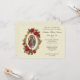 Apresentando nosso tradicional convite da Primeira Comunhão Católica com uma imagem tradicional personalizada católica desenhada de Nossa Senhora de Guadalupe com rosas vermelhas. No verso está uma citação de escrituras com uma imagem a preto e branco do Anfitrião, Chalice, e trigo representando o Pão da Vida, Jesus. O fundo de ambos os lados é um design de rendas muito leve. Fontes, textos e imagens podem ser modificados.