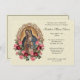 Apresentando nosso tradicional convite da Primeira Comunhão Católica com uma imagem tradicional personalizada católica desenhada de Nossa Senhora de Guadalupe com cor-de-rosa e rosas vermelhas. No verso está uma citação de escrituras com uma imagem a preto e branco do Anfitrião, Chalice, e trigo representando o Pão da Vida, Jesus. O fundo de ambos os lados é um design de rendas de naves muito leves. Fontes, textos e imagens podem ser modificados.