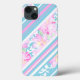 Um gabinete chic Case-Mate para proteger seu iPad, com um padrão de Turquesa e Estirpes Brancas em Cadeira e Rosas Rosa em Turquesa, pontilhado com pequenas Borboletas Brancas: parte da coleção Posh & Painterly 'Dias de Verão'.
