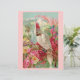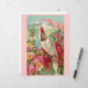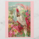 Esta é uma impressão vitoriana de uma cena bonita e colorida com uma cockatoo e rosas rosa brilhantes. Ao fundo estão montanhas e palmeiras. O papagaio tem uma crista rosa brilhante.