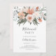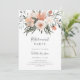 Elegante convite de festas de aposentadoria floral rústica em matizes cor-de-rosa e brancos com folhagem verde. Nome do script e tipo de texto do serif.
