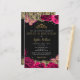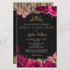 Orçamento Elegante Vintage Rosas Rosa Borboletas Douradas Raios Negras Lace Doce 16 Convite de Aniversário