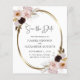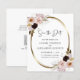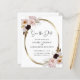 Rosas Cor-de-Rosa-Blush Douradas Casamento Metálico Salvem o Convite de Data... Nosso barato floral Salve a data com a placa buquês de lindas rosas rosa-pinceladas curvas em torno de um falso quadro metálico-oval que cria uma borda elegante para o texto do convite dentro. A parte traseira do cartão contém seu endereço de devolução, informações do site do casamento e um modelo gráfico de código QR que você pode substituir por seu próprio (ou excluir). Todo texto de exemplo (exceto o gráfico Salvar o texto Data) em ambos os lados da placa pode ser facilmente revisado com seus próprios detalhes no modelo de personalização.