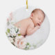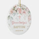 Enfeite do batismo de Rosas Rosa Verde Foliage Girl. Este design apresenta uma ilustração de rosas cor-de-rosa pálidas e caules verdes folha em estilo aquarela. No topo da poster há uma imagem de uma Cruz. Personalize com suas próprias palavras - você pode usar essas etiquetas para Crianças, Comunidades Sagradas ou Confirmações. No verso - há uma foto de bebê.