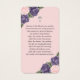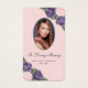 Cartão de memória floral roxo e rosa/cartão de oração funerária elegante com uma foto adornada com rosas roxas e rosa e flores de hálito de bebê em um fundo de pelúcia.