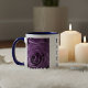 Trate a si mesmo ou a alguém especial com uma dose diária de elegância com esta linda caneca de 11oz de duas cores adornada com rosas roxas e interior azul. Feita de cerâmica de alta qualidade, apresenta um design único e atraente que adiciona um toque de personalidade à sua coleção de louças. Disponível em muitas cores.