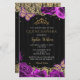 Rosas Roxos, Elegantes, Borboletas Douradas Negras Lace Quinceañera Quince Convite